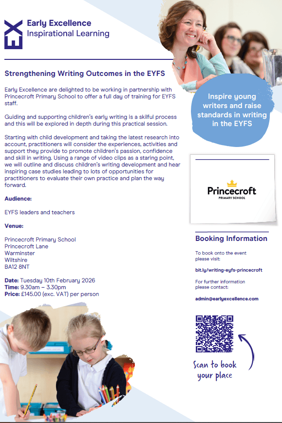 Tuesday 10th February 2026 | Strengthening Writing Outcomes in the EYFS | bit.ly/writing-eyfs-princecroft |